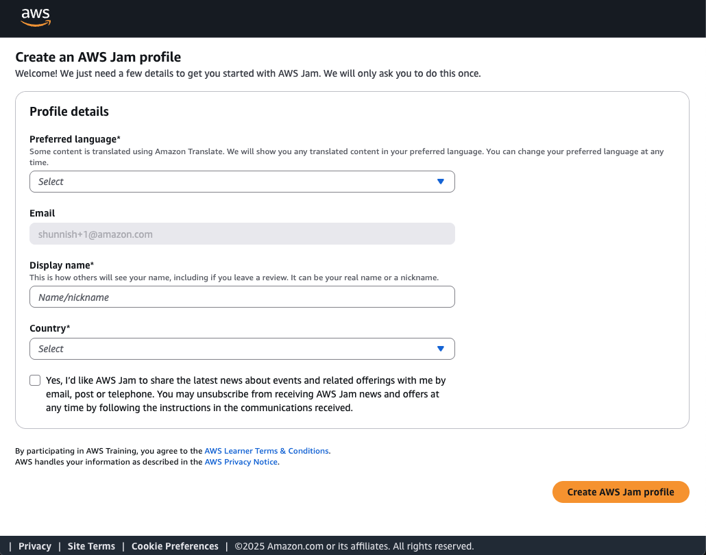 イベント開始時間までにアカウントの準備をし、AWS Jam コンソールにアクセスできることを確認してください。